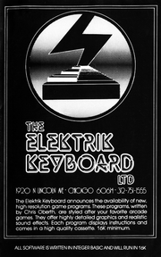 The Elektrik Keyboard was a computer and musical instrument store located on North Lincoln Avenue in Chicago, Illinois in the 1970s and 1980s. In the late '70s it added personal computers and MIDI music to its lineup, and began publishing Apple II computer software written by programmer Chris Oberth.