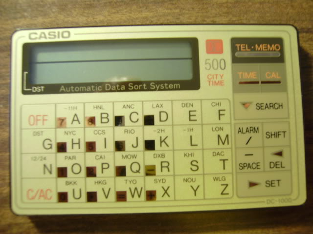 The Casio DC500 CITY TIME is an arithmetic calculator with 8 digits precision and algebraic logic. It has 4 functions, 44 keys and an LCD (liquid crystal) display.