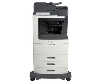 The Lexmark MX811dtfe MFP with a customizable e-Task touch screen, staple finisher, 1,750-sheet standard input, 1GB memory and 160+GB hard disk provides print, copy, fax, scan and email functions.
