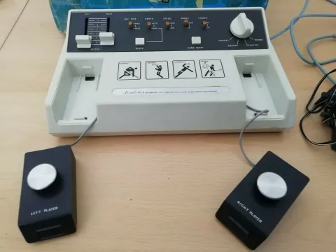 A pong console made by Academy in 1977. It uses the AY-3-8500 chip and comes with 4 games.