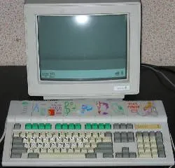 All HardwareThe A3010 was launched in Sept 1992, along with the A3020 and A4000, as a replacement for the A3000. The A3010 was the low end version of the machine - the A3010 was nearly twice as fast as the original A3000, it was aimed at the home market. The case design was a bit of a departure from the norm for Acorn - like the A3000 it was a "one box" design with the floppy drive on the right side at the back, but rather than the standard "BBC beige" with red function keys the A3010 had a grey case with green function keys. The A3010 had all the standard connectors (monitor, mouse, headphones, parallel port and serial port) but because the machine was aimed at the home market it also had the ability to drive a standard TV, and featured two joystick ports. The A3010 could take 1 Mb or 2 Mb of memory, and had no hard disc upgrade option.