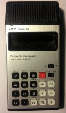 The APF MARK 51 Scientific Calculator is a scientific calculator with 8 digits precision and algebraic logic. It has 17 functions, 19 keys and a VFD (vacuum fluorescent) display. The power source is PP3 9V.