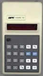 The APF MARK 73 B-5000M is an arithmetic calculator with 8 digits precision and algebraic logic. It has 5 functions, 20 keys and an LED (light-emitting diode) display, typical of calculators of this era. The power source is PP3 9V.