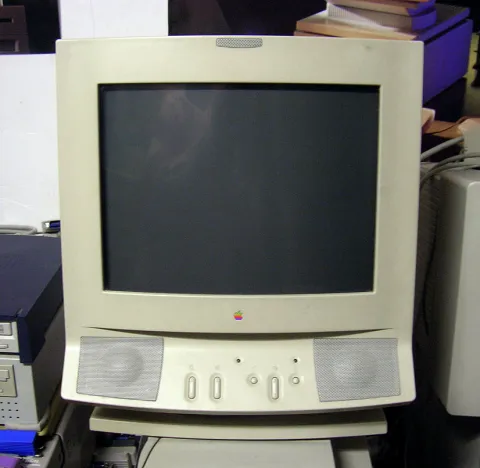 The Apple AudioVision 14 Display is a 14-inch Trinitron display that was manufactured by Apple Inc. This display is unique because it is the only display ever to use the HDI-45 connector, capable of transferring video to the screen, video capture input from an S-Video source, audio output, audio input, and Apple Desktop Bus (ADB) all through one cable. The monitor also has a built-in microphone.