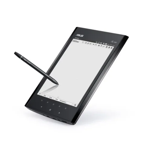 The Asus EA800 or eee NOTE is a 8 inch TFT touchscreen with a resolution of 768×1024. It features 64 levels of grayscale on the capacitive touch screen and has a DPI rate of 2540. This is primarily a grayscale device with no color at all, but it does have the best stylus interactive display we have ever seen. It features 256 degrees of pressure and the Stylus that comes with it has a bit of torque, which means the pen aspect actually has some give on it.