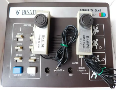 This pong is one of the many Binatone systems. It is the first of the "Colour TV game" series and offers 4 pong games (squash, squash practice, football, tennis).