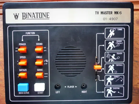 This pong is one of the many Binatone systems. As its name indicates, it offers 6 games : 4 pong games (squash, squash practice, football, tennis) and 2 shooting games (target, shooting).