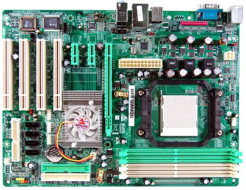The Biostar NF4U AM2G Motherboard is designed for AMD processors like Athlon 64 FX, Athlon 64 X2, Athlon 64, and Sempron series CPUs. It supports AMD HyperTransport technology up to 2GB. The Biostar NF4U AM2G motherboard has 1 PCI-Express x16 slot, 2 PCI-Express x1 slots, and 4 PCI slots. There's space for 4 DDR2 SDRAM DIMMS memory, up to 4GB. The Biostar NF4U AM2G utilizes the NVIDIA nForce4 Ultra chipset. Features like SATA capabilities for RAID 0, 1, 0+1 setups, 10 USB 2.0 ports, 4 SATA connectors and AMD Cool'N'Quiet technology