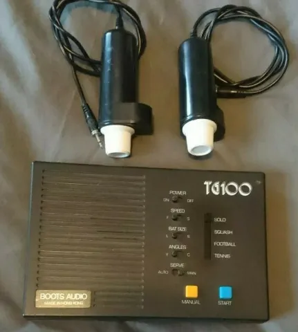 Boots Audio TG100 is a rebranded Poppy 9009 sold by Boots Audio in the UK. The Poppy 9009 is a typical pong console with a small, flat design using the General Instruments AY-8500 Chip.