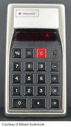 The Bowmar MX61 90601 is an arithmetic calculator with 8 digits precision and algebraic logic. It has 5 functions, 18 keys and an LED (light-emitting diode) display, typical of calculators of this era. The power source is 3xAA batteries.