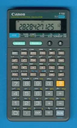 All HardwareThe F-700 is an interesting programmable calculator from Canon. Its programming model shares many features with that of other Canons. Curiously, its chipset may be different. Most Canon programmables that I've seen use Toshiba chips, but this one probably doesn't. I've not been able to open this F-700 to check, but I have an OEM calculator that appears to be an identical model: opening that Westfalia-Technik 269878 reveals a NEC chip. It stands to reason that the same chip is used in the Canon F-700. On the other hand, the Westfalia-Technik's circuit board reveals another label: Truly 105, which is a Hong Kong manufacturer. To top it all off, the machine's programming model is identical to that of many Casio calculators, and different from the programming model used in other Canons... Curiouser and curiouser!