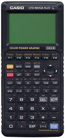 This is the Casio model used quite a lot in schools in The Netherlands in 2001/2002.The Casio CFX-9850GB PLUS has a colour display.