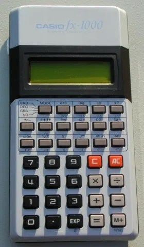 The Casio fx-1000 is a scientific calculator with 8 digits precision and algebraic logic. It has an unknown number of functions, 37 keys and one of the early LCD (liquid crystal) displays which incorporated a yellow filter.