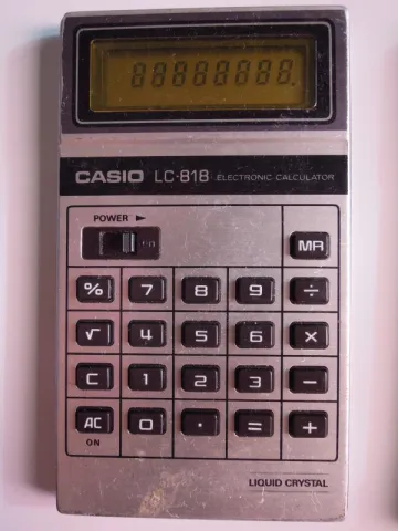 The Casio LC-818 is an arithmetic calculator with 8 digits precision and algebraic logic. It has 6 functions, 21 keys and one of the early LCD (liquid crystal) displays which incorporated a yellow filter.
