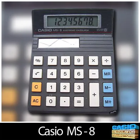 The Casio MS-8 is an arithmetic calculator with unknown digits precision and algebraic logic. It has 6 functions, 23 keys and an LCD (liquid crystal) display.