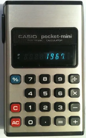 The Casio pocket-mini CP-801C CP-801C is an arithmetic calculator with 8 digits precision and algebraic logic. It has 5 functions, 19 keys and a VFD (vacuum fluorescent) display. The power source is 2xAA batteries. The calculator was manufactured in Japan.