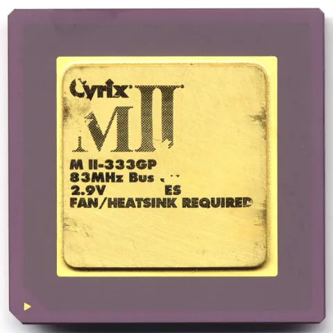 After Cyrix was purchased by National Semiconductor in 1997 they terminated their foundry agreement with IBM. National fabricated their own chips and the 6x86MX was re-named MII. Compared to early 6x86MX CPUs the MII had some enhancements to its processor core. Heat output was reduced allowing it to rise to clock speeds over 220MHz. The MII also required non-standard bus speeds at 75 or 83MHz on socket 7 boards and therefore had some troubles with stability.