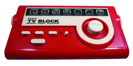 All HardwareEpoch released the TV Block in May 1979. This funky pong is the Japanese version of the Atari Video Pinball C-380 (and the Sears Pinball Breakaway). The company purchased chips from Atari and built its own version of the Atari’s Video Pinball. The audio from the Atari units was heard through the console’s speakers but Epoch went ahead and channeled the audio through the TV set. It plays seven games: Flipper pinball 1, Flipper pinball 2, Racket pinball 1, Racket pinball 2, Basketball 1, Basketball 2 and Breakout. All these games are in fact improved pong games. All the games are controlled by the big white dial placed on the right part of the system, except the two flipper pinball games which must be played with the two side buttons, just like with a real pinball! Apparently there was a TV Block MB model which had slightly different games. Instead of 2 basketball games and 1 breakout game, there were only one basketball game and 2 breakout games.