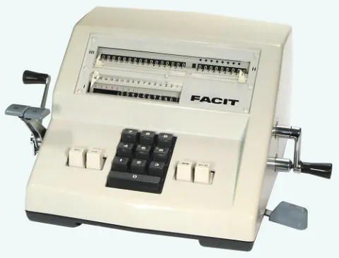 The Facit model range was reorganised again in 1967, with new model numbers in a 10-XX series. Model 10-04 is essentially the same as the well-established CM2-16, but with a plastic housing, a much lighter colour scheme, and a pull-out carry handle at the front.