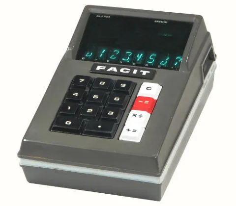 Facit Model 1111 is a re-packaged version of the famous Sharp EL-8. The Sharp machine was introduced in November 1970, and is generally accepted as the world's first battery-powered portable electronic calculator.
