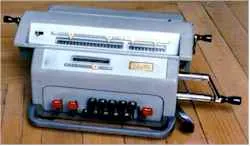 This Facit model CI-19 is a, four rules, reversed pinwheel mechanical calculator with an 9 digit keyboard, a 10 digit input register a 10 digit revolutions register and a 19 digit accumulator register. The revolution and accumulation registers are on a moveable carriage.