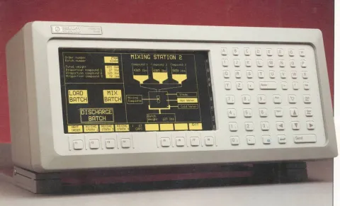 The 3082A was a sealed, industrial terminal. It came with a 28 x 80 character touch screen and included an alpha keyboard mounted immediately to the right of the screen. The 3082A was plug-compatible with the 2392 terminal.