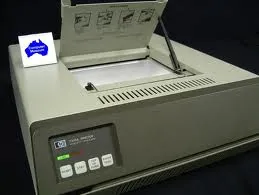 The 7310A was a high speed (500 lines per minute) graphics printer. Graphics print resolution was 100 dots per inch. Text was printed in a 9 x 15 dot cell matrix. The 7310A featured an easy-to-load paper well. Users only had to drop o roll of new paper into the well and the printer would load and trim it automatically.