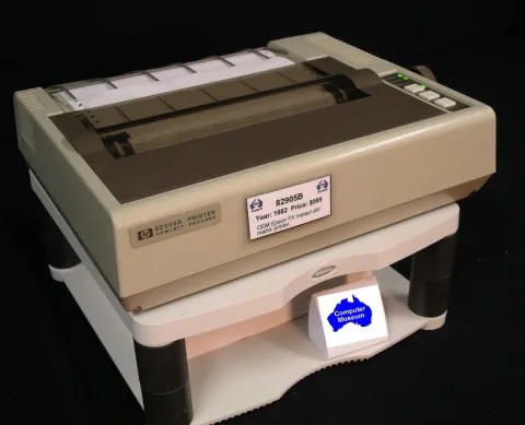 The 82905A was a low-end, narrow-carriadge dot matrix printer made by Epson. HP obtained this printer primarily for use with the 80 Series computers. The 82905A had a print speed of 80 characters per second. The dot character cell was 9 x 9 and graphics printing resolution was possible up to 72 x 120 dots per inch. The 82905B, introduced in 1982 (at $795) offered an optional HP-IL interface.