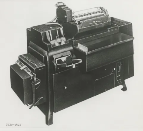 Introduced in 1934, the 405 Alphabetical Accounting Machine was the basic bookkeeping and accounting machine marketed by IBM for many years. Important features were expanded adding capacity, greater flexibility of counter grouping, direct printing of the entire alphabet, direct subtraction and printing of either debit or credit balance from any counter. Commonly called the 405 "tabulator," this machine remained the flagship of IBM's product line until after World War II.