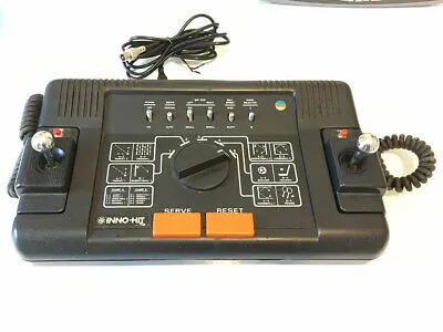 Inno-Hit GT-10C is a dedicated console playing eight Pong variants and two target shooting games. The console uses the AY-3-8610 dedicated pong chip and features the following games: Football, Hockey, Handball, Handball Practice, Tennis, Basketball, Basketball Practice, Gridball, Skeet and Target Shooting. Settings swap between manual or automatic service, bat size, deflection angle and speed. Paddles can move in all directions.