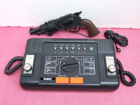 Intel TV Sport 3006 is a common Pong system that was sold under lots of different brands. It is almost the same like the Super Tele-Sport but with the 2 classic shooting games (includes a revolver). (1977)