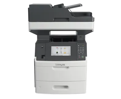 The Lexmark MX710de MFP with a customizable e-Task touch screen provides print, copy, fax, email and scan functions. Included are 650-sheet standard input and 512MB of standard memory.