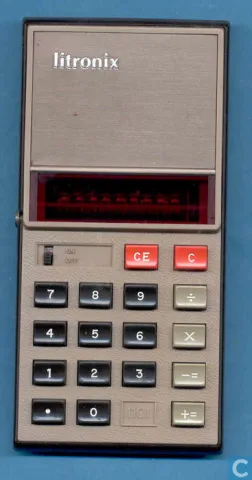 The Litronix 1101 is an arithmetic calculator with 8 digits precision and algebraic logic. It has 4 functions, 17 keys and an LED (light-emitting diode) display, typical of calculators of this era. The power source is 4xAA batteries.