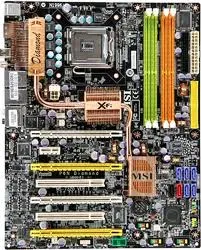 All HardwareLike most of MSI's recent boards, the MSI P6N Diamond is a full-sized, 9 mounting hole, ATX board that sets off the various components in almost neon colors against a blackish PCB. Its most striking feature would have to be the copper heatsinks and piping that connect the North and South Bridges to a radiator placed above the CPU socket area, venting off excess heat directly out the back of the chassis. The positioning of the heatsinks may cause some concern when using a large after-market heatsink, such as some of Zalman's designs. As it is, using the stock Intel cooler, there is almost no clearance between it and the North Bridge heatsink/fan a slight few centimeters from the radiator. The old adage, "measure twice, cut once", will probably hold true here, as you should really double check that your cooler will actually fit into the socket area before attempting to install it.