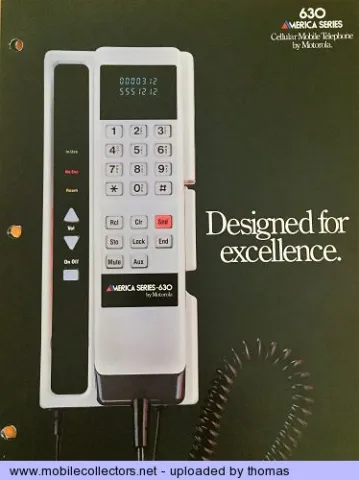 Motorola America Series 630 is a personal transportable cellular telephones manufactured by Motorola in 1984.