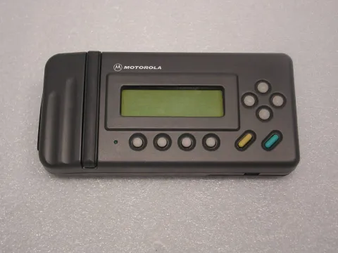 Motorola InfoTAC is not a mobile phone as such, but an early example of a portable wireless data modem. Has a serial port for connection to a PC. Also functions as a two way pager device. Operated on freq band just below the AMPS band. Cost $1100 new. 800 MHz portable wireless data modem & messenger. Uses RD-LAP protocol. 19.2 kb data rate. Used on Telecom Australia MobileData network.