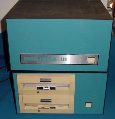Ohio Scientific Challenger III introduced in 1978 is an enhanced version of the Challenger IIp. It has 3 cpu's: a 6800, 6502A and Z80. Includes dual 8" floppy drives. Designed to run up to 16 terminals.