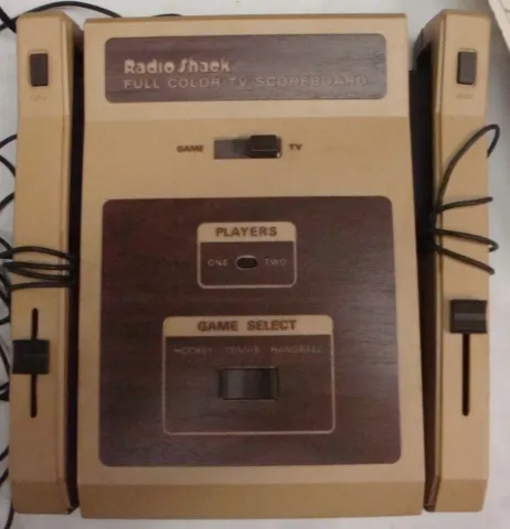 Full Color TV Scoreboard is dedicated console featuring various Pong variants. The games included are Hockey, Tennis and Handball. Each game can be played with one or two players. As the title suggests the game is in color. Each controller features a slider and a serve button.
