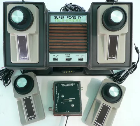 The Tele-Games Super Pong IV (99737) was released in 1976 by Sears. It is an Atari console licensed to Sears (pedestral case). The same as Atari's "Super Pong Ten [Model C-180]".