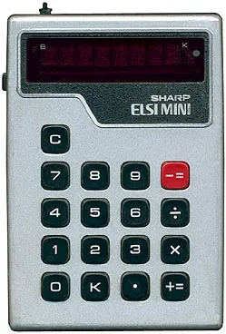 The Sharp EL-801 ELSI MINI is an arithmetic calculator with 8 digits precision and algebraic logic. It has 5 functions, 17 keys and an LED (light-emitting diode) display, typical of calculators of this era. The power source is 4xAA batteries. The calculator was manufactured in Japan.