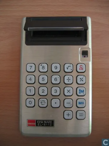 The Sharp EL-8110 ELSIMATE is an arithmetic calculator with 8 digits precision and algebraic logic. It has 7 functions, 22 keys and an LCD (liquid crystal) display. The power source is 2x1.5V cell.