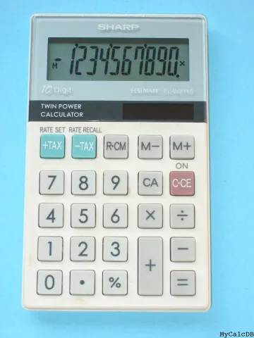 The Sharp EL-W211G ELSIMATE is an arithmetic calculator with 10 digits precision and algebraic logic. It has 7 functions, 24 keys and an LCD (liquid crystal) display. The power source is CR2016 3V. The calculator was manufactured in China.