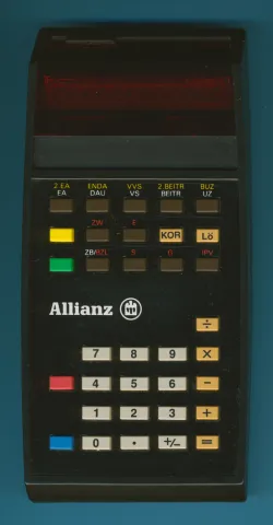 Special version of the TI 58 with module and keyboard designed by the German Allianz financial company for use by its insurance agents.