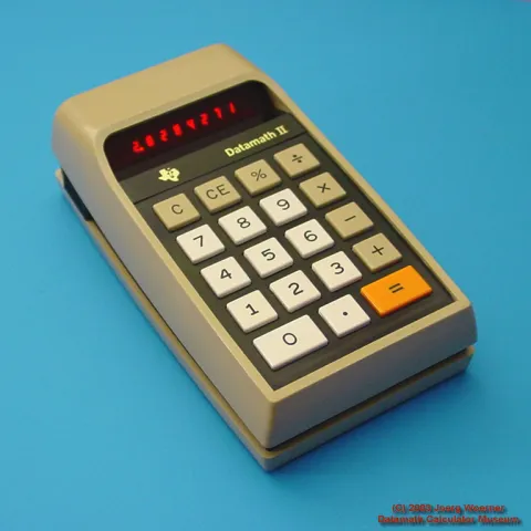 The Texas Instruments Datamath II TI-2500-II ; TI-2500 II is an arithmetic calculator with 8 digits precision and algebraic logic. It has 5 functions, 19 keys and an LED (light-emitting diode) display, typical of calculators of this era. The power source is 2xAA batteries. The calculator was manufactured in Spain; USA.