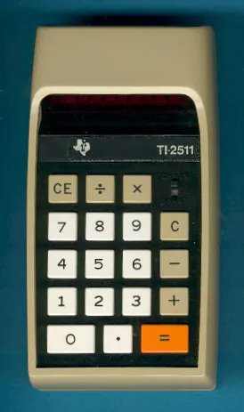 The Texas Instruments TI-2511 is an arithmetic calculator with 8 digits precision and algebraic logic. It has 4 functions, 18 keys and an LED (light-emitting diode) display, typical of calculators of this era. The power source is 4xAA batteries. The calculator was manufactured in Spain.