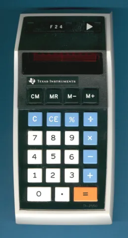 The Texas Instruments TI-2550 is an arithmetic calculator with 8 digits precision and algebraic logic. It has 5 functions, 23 keys and an LED (light-emitting diode) display, typical of calculators of this era. The power source is 4xAA battery pack. The calculator was manufactured in Italy; USA.