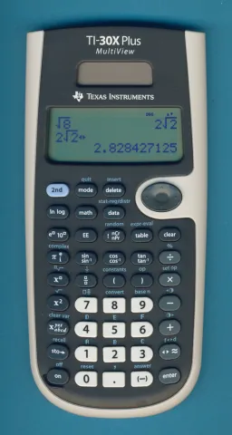 Instead of the in 1999 novel 2-line display the TI-30X Plus MultiView features a dot matrix display with 31 * 96 addressable pixels allowing the calculator to display equations as they would be printed in a text book.
