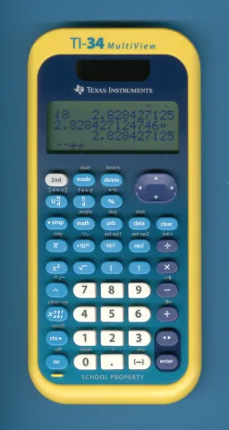 To reduce theft of this new school-owned TI-34 MultiView calculator, Texas Instruments introduced in 2008 the EZ-Spot Teacher Packs with a bright, easy-to-spot, "school bus yellow" back cover and slide case.