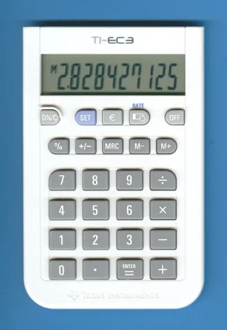 The Texas Instruments TI-EC3 is an arithmetic calculator with 10 digits precision and algebraic logic. It has 6 functions, 26 keys and an LCD (liquid crystal) display. The power source is LR189. The calculator was manufactured in China.