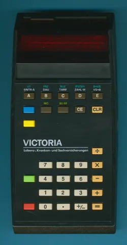 This one was used end of the 70th by insurance agents of the German Victoria company.This software was written by the SW-engineers of the Victoria company and programmed into the modules by Texas Instruments.